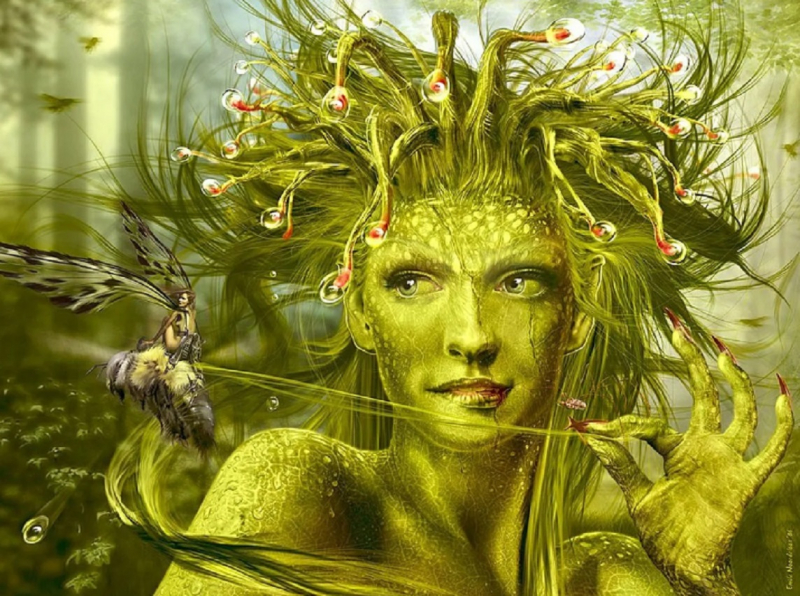 Он нередко подстраивал ловушки для неискушённых людей - кладёт на их пути зеленую траву или коряжину, бревно, под которыми размещается бездонная топь или трясина.