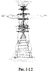 Местоположение центров семи основных вихрей таково: самый нижний размещается в основании туловища; второй — на уровне самой верхней точки полового органа; третий — чуть ниже пупка; четвертый — посередине грудной клетки; пятый — на уровне основания шеи; шестой — в середине головы; что же касается седьмого вихря напоминает конус с обращенным кверху открытым основанием и располагается в голове над шестым вихрем (Рис.1–1.2).