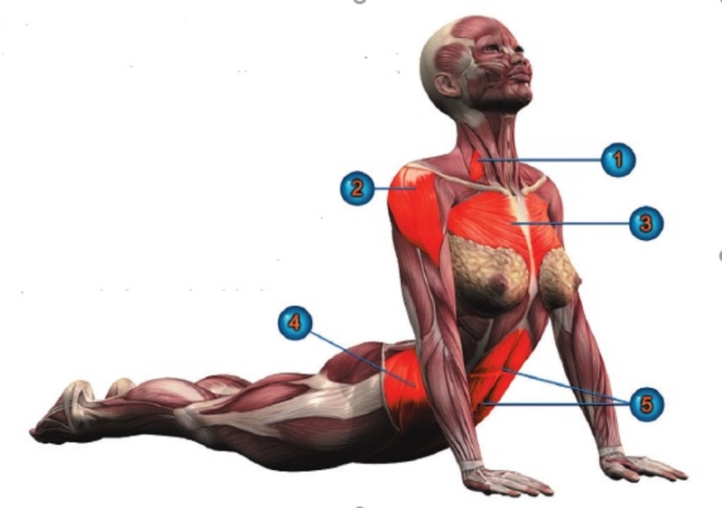 В позе кобры передняя зубчатая мышца активно работает, сохраняя нейтральное положение лопаток по отношению к грудной клетке, несмотря на давление со стороны рук. Позвоночник при этом разгибается, но лопатки не поднимаются.