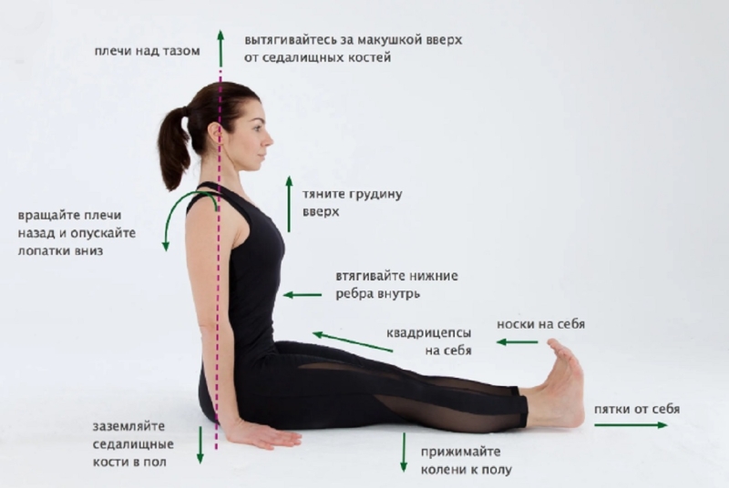 Базовая поза сидя без сгибания позвоночника. Для начинающих.