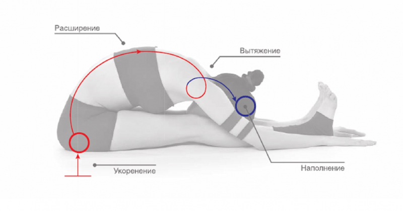 Принятию данной позы способствуют правильные дыхательные движения. Выдох усиливает сгибание в области таза, а вдох помогает выпрямить позвоночник. Этого можно добиться лишь в том случае, если выдох происходит за счет работы мышц живота, а вдох - за счет расширения грудной клетки.