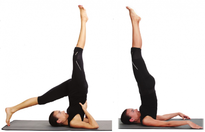 Эка пада сарвангасана в результате разнонаправленного положения ног также оказывает более выраженное тонизирующее действие на мышцы тазового дна и, соответственно, на функциональное состояние органов малого таза.