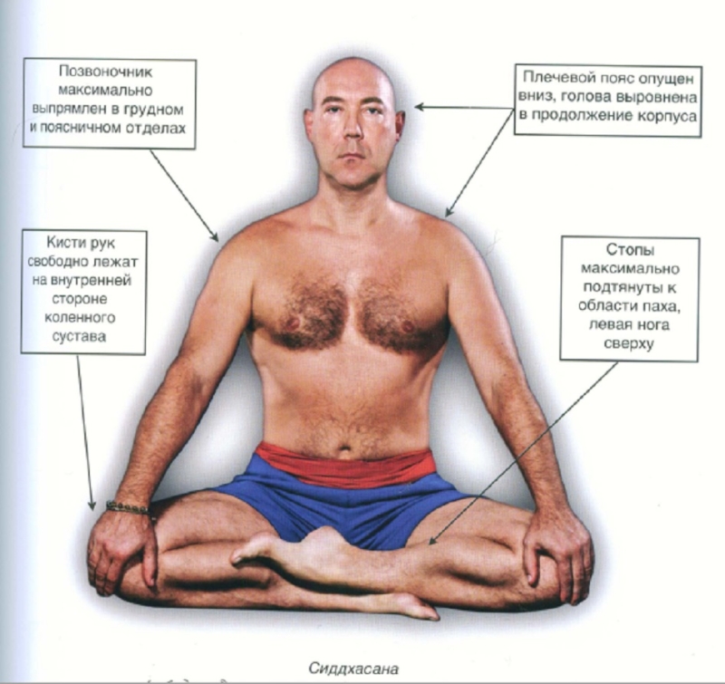 Наиболее простой вариант падмасаны, в котором, тем не менее, можно выполнять практику "кувшинного дыхания".