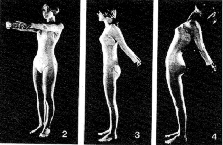 Голова все время отклонена назад. Расслабьте мышцы ног (обращайте внимание на возникающее в ногах напряжение). Неподвижно удерживайте позу 15 секунд.