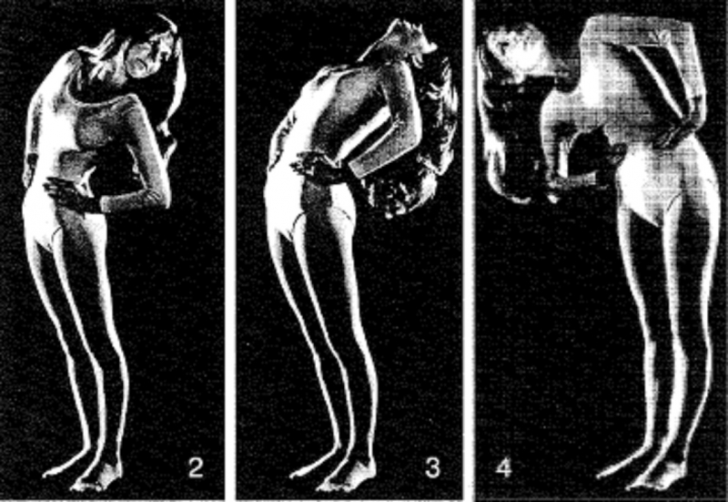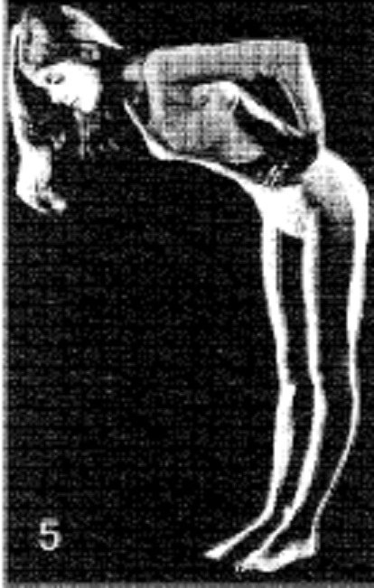 1 Встаньте прямо, пятки вместе. Полижите руки на бодра. Медленно наклонитесь вперед на небольшой угол, как показано на иллюстрации.