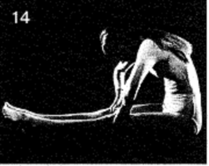 14. Вернитесь к упражнению "Растяжение позвоночника 1" и выполните его, держась за колени, 1 раз.