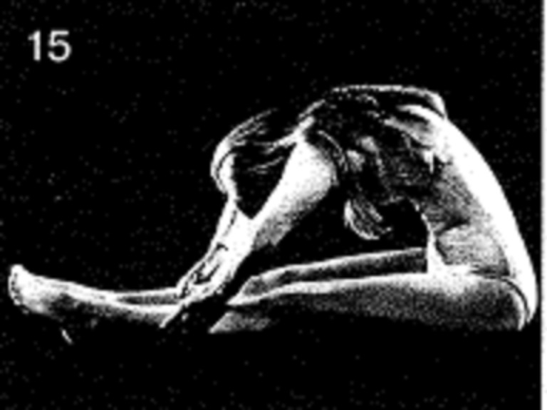 15. Вернитесь к упражнению "Растяжение позвоночника 2" и выполните его, держась за икры, I раз.