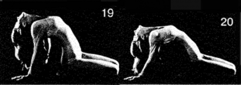 В завершение сегодняшнего повторения пройденного материала мы выполним группу упражнений 1 раз в виде непрерывного движения, однако на этот раз сделаем следующее отступление: мы не будем делать паузы не только между упражнениями, но и в пределах каждого упражнения. Иными словами, мы не будем удерживать крайние положения. Достигнув крайнего положения при выполнении позы, мы будем сразу (хотя, разумеется, и медленно) выходить из нее и переходить к следующей. Таким образом, приступив к выполнению комплекса, вы не будете прерывать движение от начала до конца. Двигайтесь очень медленно, глубоко сосредоточившись на том, чтобы все движения и позиции плавно перетекали одно в другое, подобно замедленному балету.