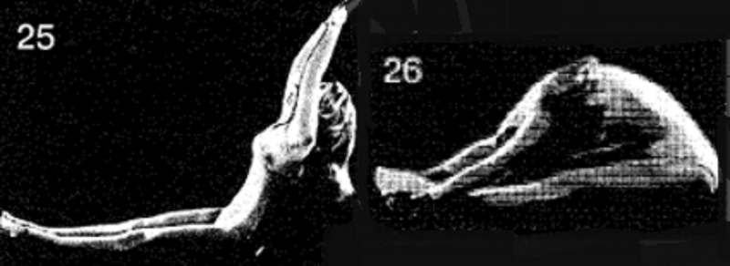 25-26. Выполните упражнение по 1 разу.. Неподвижно удерживайте каждое крайнее положение 15 секунд. По завершении расслабьтесь.
