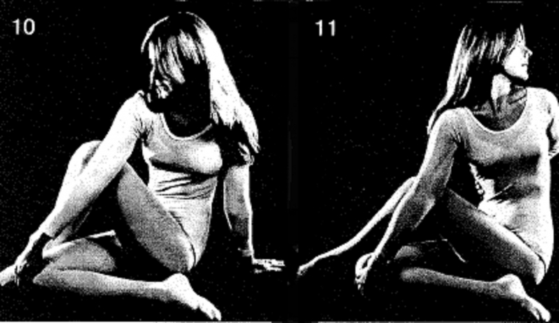 11. Окончательная поза (изучите иллюстрацию). Медленно выполните скручивающее движение корпусом и головой влево как можно сильнее.