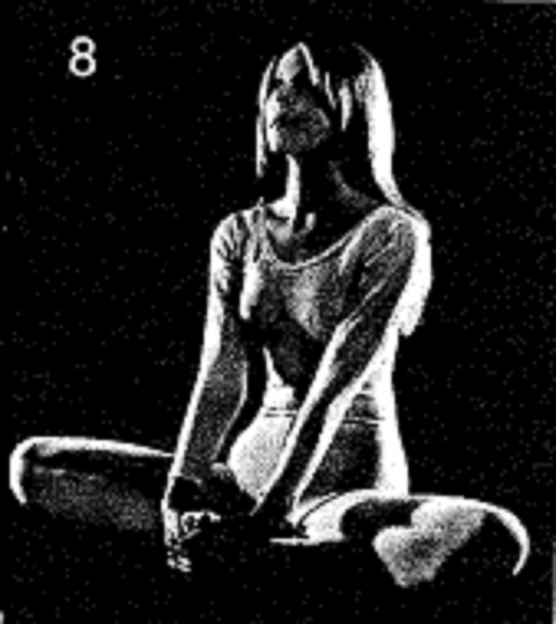 10-11. Выполните максимальное скручивание дважды в левую сторону, а затем дважды в правую сторону. Удерживайте максимальное скручивание на 10 счетов. По завершении расслабьтесь.