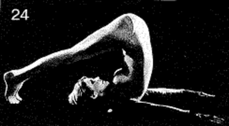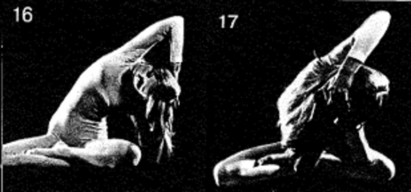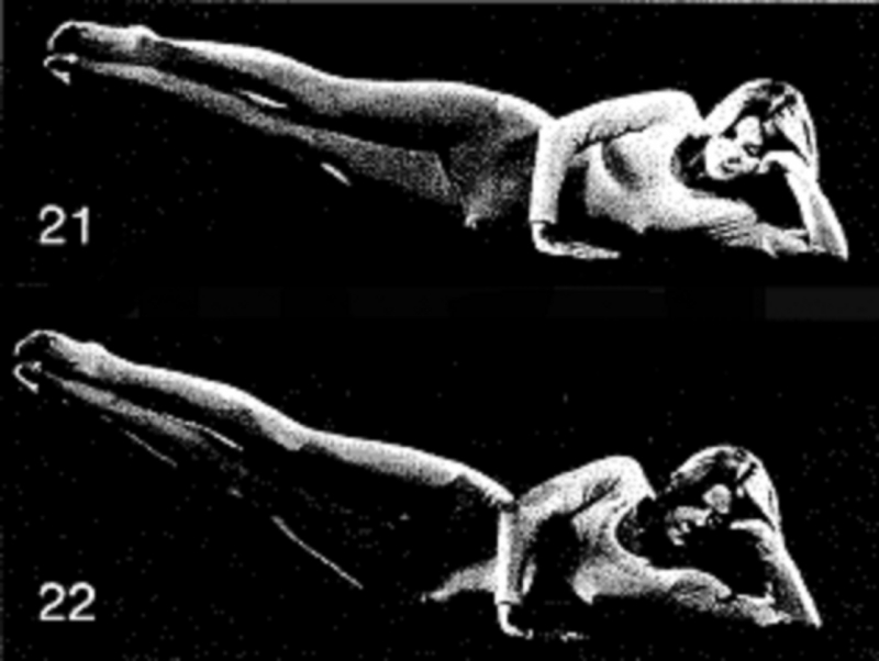 21-22. Выполните всю последовательность дважды влево, а затем дважды вправо. Удерживайте позицию с одной поднятой ногой на 10 счетов и позиции, изображенные на илл. 21-22, по 5 счетов каждую. Ненадолго расслабляйтесь между повторами.