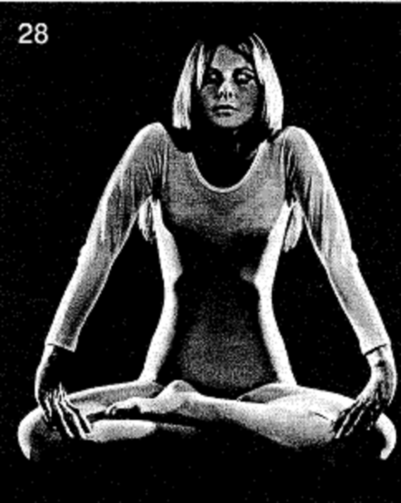 28. В завершение комплекса примите позу со скрещенными ногами (по возможности всегда принимайте Позу полулотоса; если вы не можете принять ее, продолжайте практиковать позу, показанную на илл. 8 на с. 41) и выполните три Полных дыхания. Затем посидите спокойно, остро осознавая все ощущения в теле. Не позволяйте сознанию блуждать.