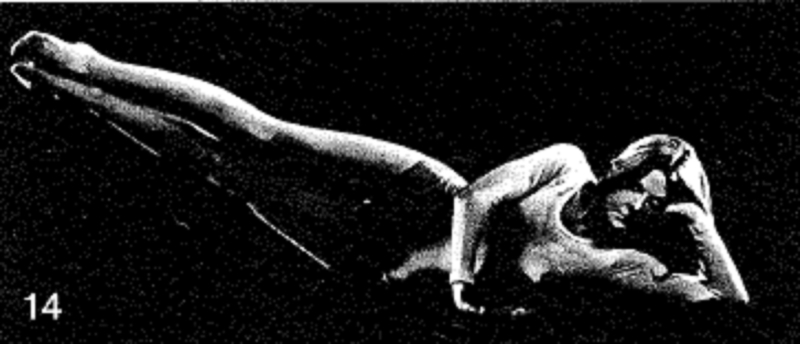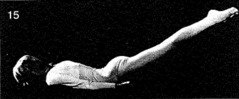 14. Выполните всю последовательность из трех позиций, дважды в левую сторону и дважды в правую. Удерживайте подъем каждой ноги по отдельности на 10 счетов. Удерживайте подъем обеих ног в среднем положении на 5 счетов. Удерживайте подъем обеих ног в крайнем положении на 5 счетов.
