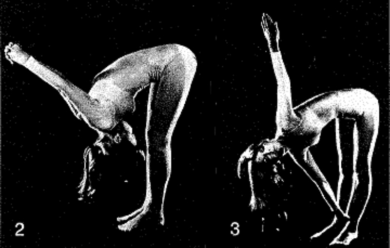 2. Выполните упражнение по 1 разу в каждой из трех позиций. Считайте до 10 при прогибах назад и до 20 при каждом наклоне вперед. Держите руки как можно выше на протяжении всего упражнения. Не выполняйте сегодня движений ногами. По завершении расслабьтесь.