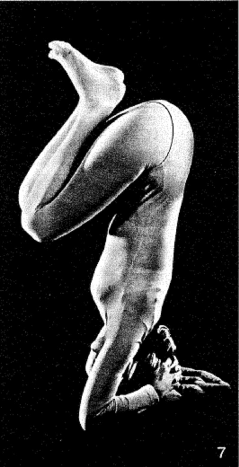 На данном этапе наших занятий настало время ввести в это упражнение движения, завершающие позу Стойка на голове. Если вы чувствуете, что готовы к этому, попытайтесь выполнить их, соблюдая осторожность. Если вы еще не готовы, продолжайте практиковать прежнюю вариацию этой позы. Полная Стойка на голове представляет собой трудную позу продвинутого уровня, для овладения которой необходима регулярная и терпеливая практика. Однако польза, которую вы получите от этого упражнения, с лихвой окупит затраченные усилия.