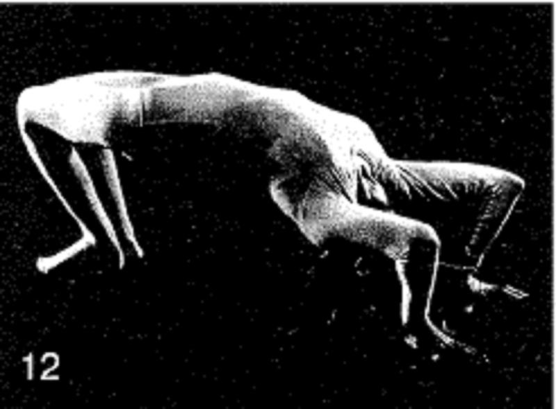 12. Выполните позу по 2 раза в каждой из двух позиций. Удерживайте подъемы в среднем положении на 10 счетов каждый, а в крайнем положении — на 20 счетов каждый. Держите колени вместе. Делайте небольшие паузы между повторами. По завершении расслабьтесь.