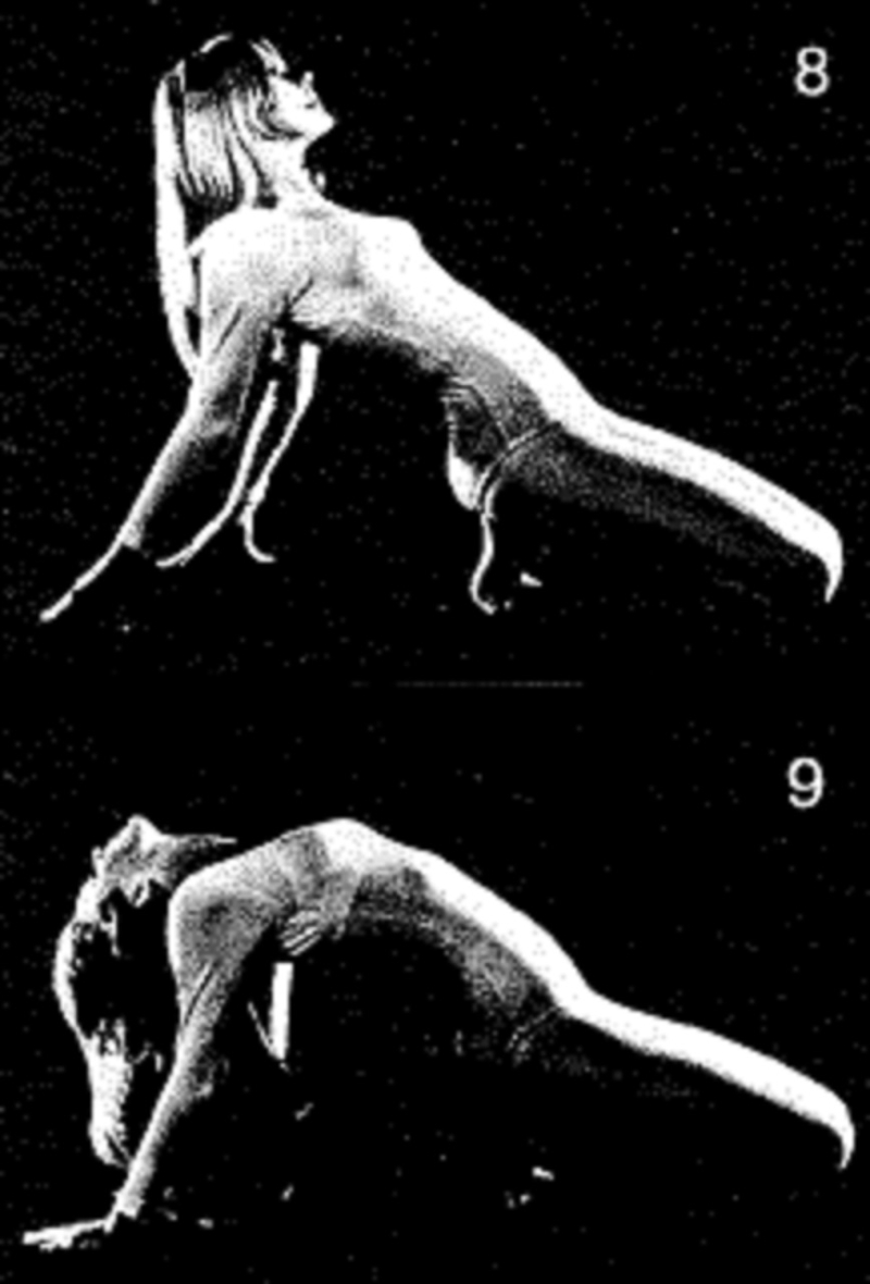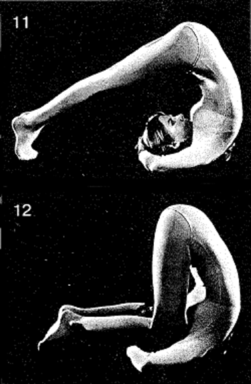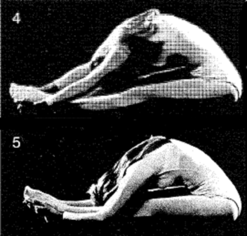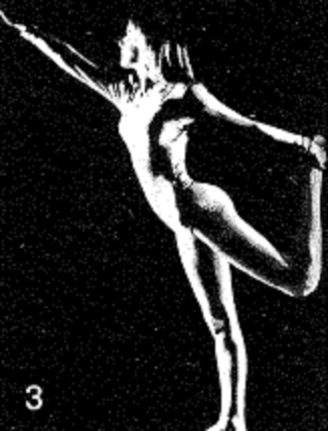 2. Поза равновесия (в положении крайнего растяжения, с последующей вариацией, изображенной на илл. 3; по 1 разу в каждую сторону, без удержания).