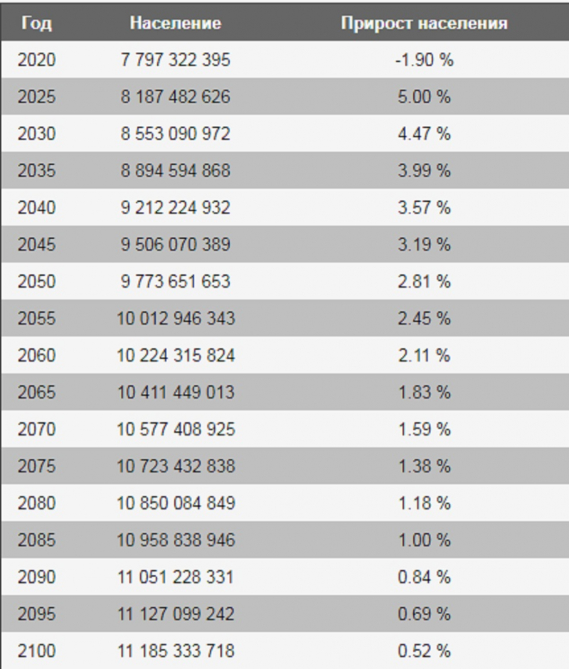 В 2022 году численность населения Земли продолжит увеличиваться и в конце года будет составлять 8 046 949 318 человек. Естественный прирост населения будет положительным и составит 98 415 064 человека.